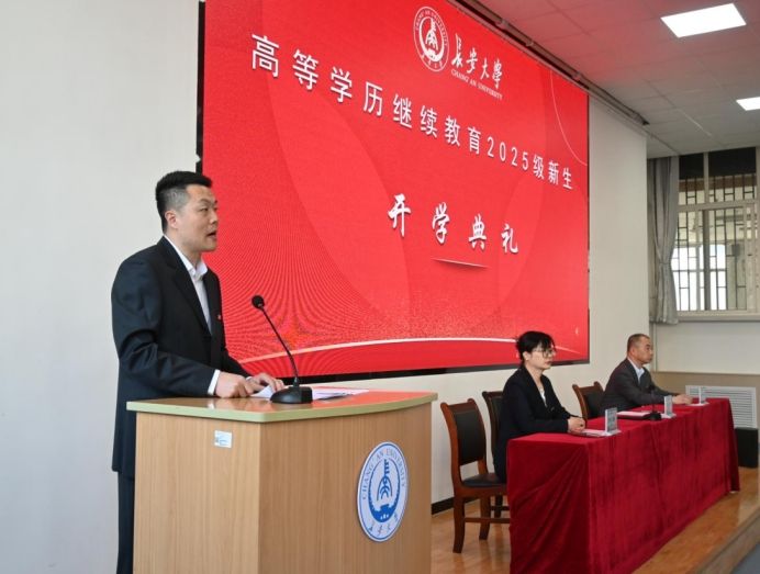 3月25日上午,继续教育学院2025级新生开学典礼在南校区西院第四教学楼报告厅举行。继续教育学院院长涂帅、副院长邱旭辉、校外教学点负责人、工作人员以及新生代表参加典礼。开学典礼由副院长李小蓉主持。