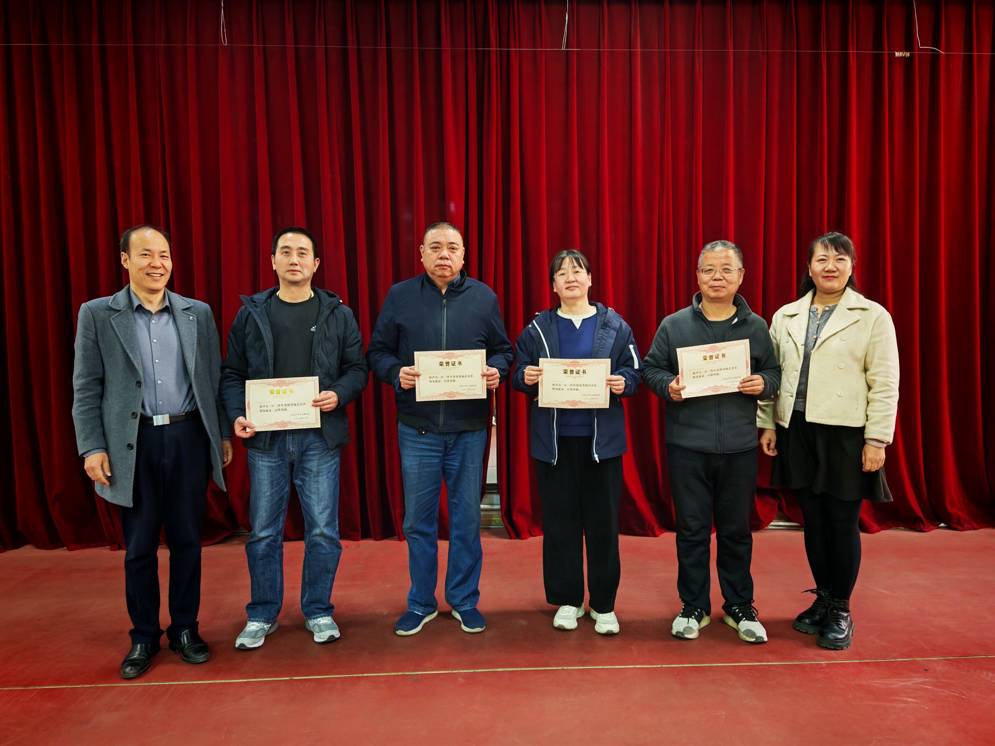 在听取工作汇报的基础上,经现场投票,合唱协会、舞蹈协会、瑜伽协会、乒乓球协会获得2024年度优秀协会称号。羽毛球协会会长、手工协会会长、门球协会会长、文学协会会长获得2024年度优秀协会会长称号。