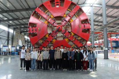 长大师生与陕铁院教师在盾构机前合影